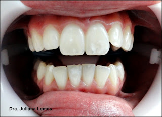 A paciente em questão, procurou tratamento em virtude das manchas hipoplásicas, da cor dos elementos e da dimensão do incisivo central comparado aos laterais.