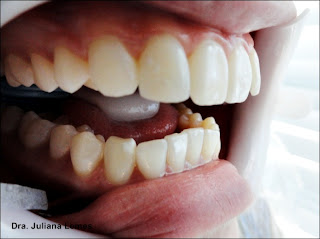 A remodelação foi feita 1 semana após o término das sessões de clareamento, no caso, 3 sessões de consultório.