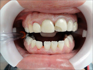 Reparem que ela possui coroas nos incisivos superiores! A resina utilizada foi a Z350 XT (3M ESPE), fio afastador gengival Pro Retract OO (FGM) afastador labial Arcflex (FGM), pontas diamantadas para acabamento de resina em baixa rotação (para texturização), seguida de polimento com discos Sof Lex (3M ESPE) e pasta diamantada com discos de feltro (Diamond Excel – FGM)