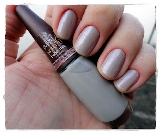 >Quando olhei o vidrinho, foi paixão à primeira vista! Mas… esse esmalte vai pro lixo! Um cinza perolado, da Impala, linha “Novo 70“.