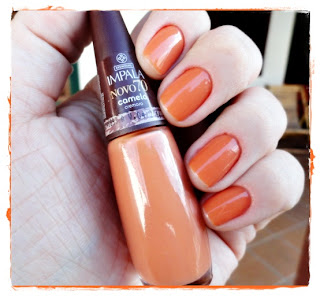 Esse esmalte, da linha “Novo 70 – Impala“, Camelo, é um laranja mais discreto. Em fotografia, como pude perceber, quase um pastel. Nada de abóbora.