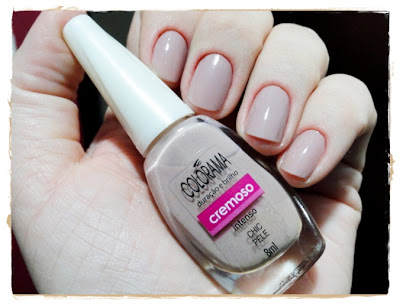 O que eu mais gosto! Já falei das tendências nudes, que vieram com força pra substituir o imortal “Renda”. Mas esse, na minha opinião, é o mais bonito de todos! Delicado, levemente puxado para o rosado, mas ainda mantendo uma base cinza! Brilho, cobertura e secagem rápida. Invistam em mãos cuidadas, delicadas! Fique linda!